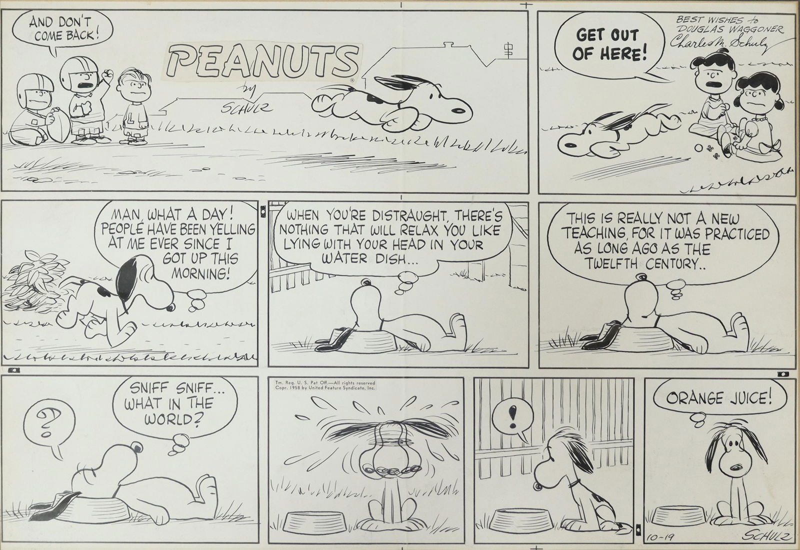 Schulz Peanuts Sunday 1958 Snoopy Comic Strip Barnebys