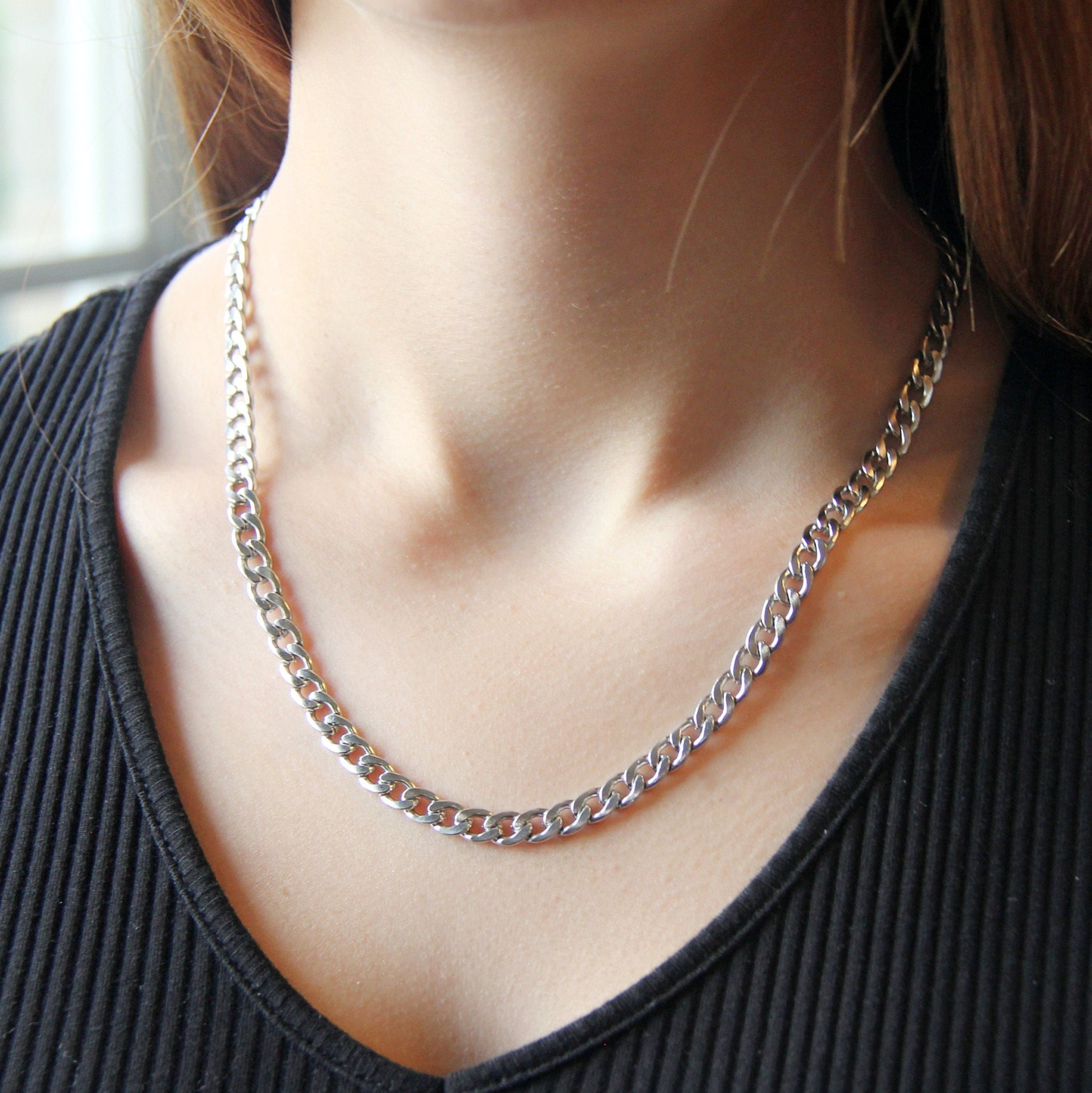 Men S Chain Silver 6mm Curb Chain Necklace For Men Or Woman Stainless Steel Waterproof Silver Necklace Thick Chunky Curb Chain Gift Etsy De